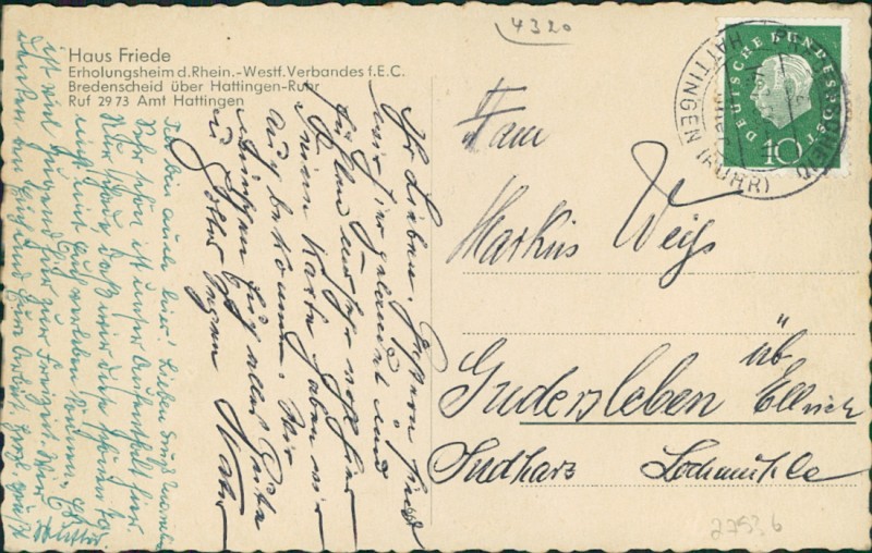 Alte Ansichtskarte aus Hattingen-Bredenscheid, gelaufen am 14.07.1959.