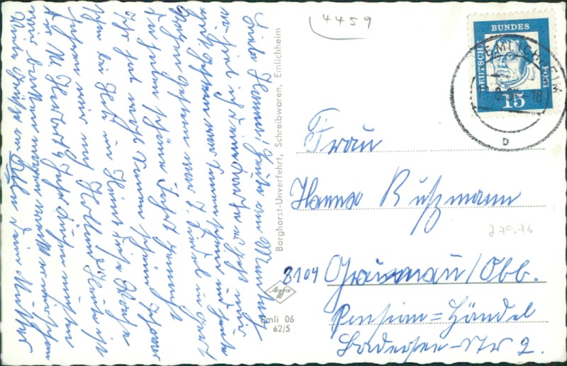 Alte Ansichtskarte aus Emlichheim, gelaufen um 1965.