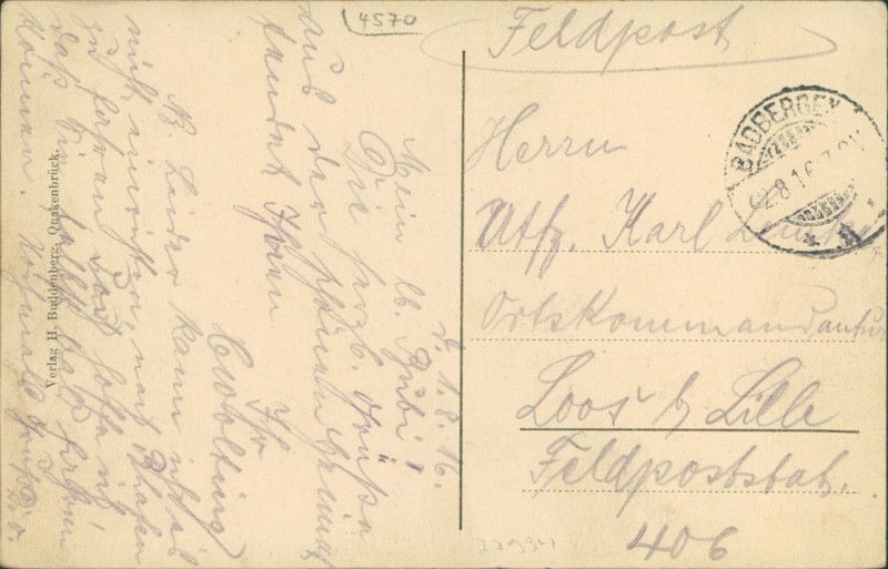Alte Ansichtskarte aus Quakenbrück, gelaufen am 02.08.1916.