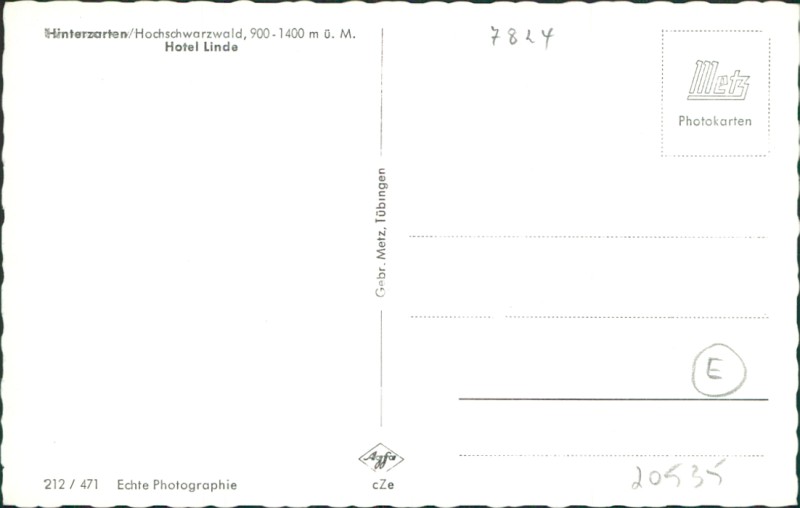 Alte Ansichtskarte aus Hinterzarten, ungebraucht, gedruckt um 1960.