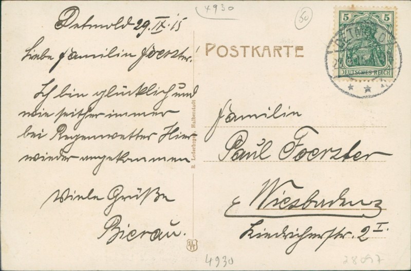 Alte Ansichtskarte aus Detmold, gelaufen am 29.09.1915.