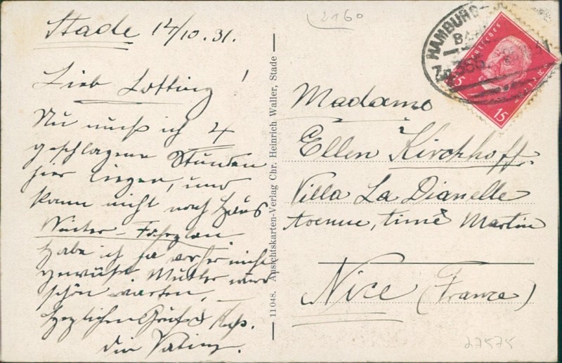 Alte Ansichtskarte aus Stade, gelaufen am 25.10.1931.