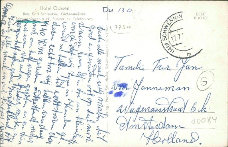 Alte Ansichtskarte aus Villingen-Schwenningen, gelaufen um 1953.
