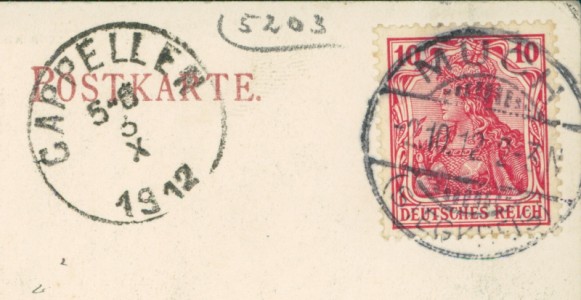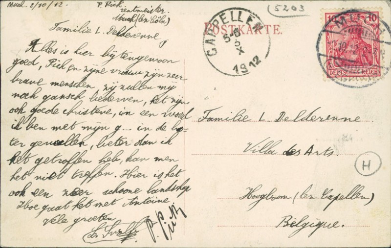 Alte Ansichtskarte aus Much, gelaufen am 02.10.1912 von Much (Siegkreis) nach Cappellen. Ankunft in Cappellen am 03.10.1912.