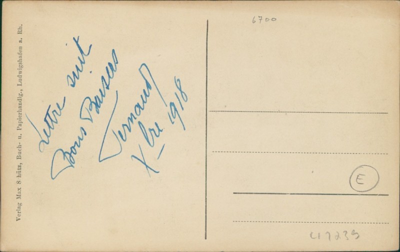 Alte Ansichtskarte aus Ludwigshafen am Rhein, beschrieben um 1918.