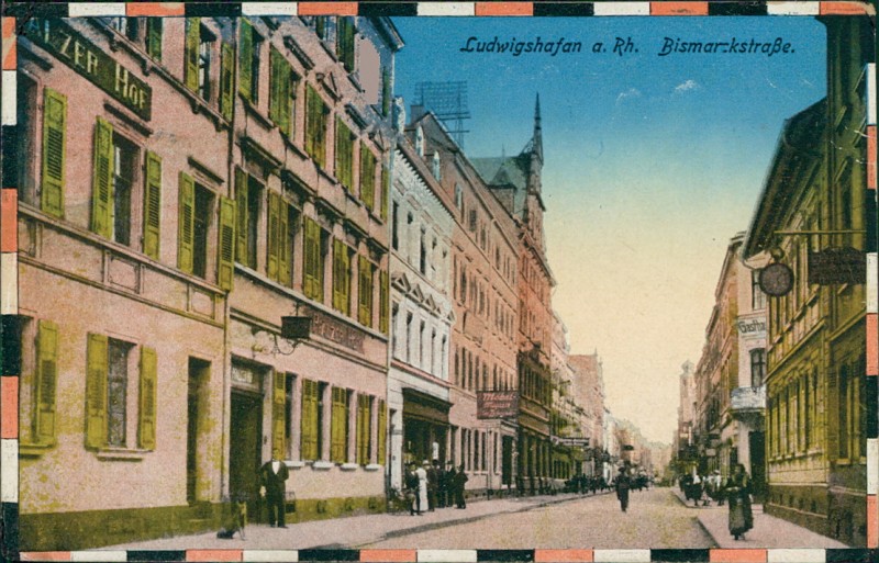 Alte Ansichtskarte aus Ludwigshafen am Rhein, beschrieben um 1916.