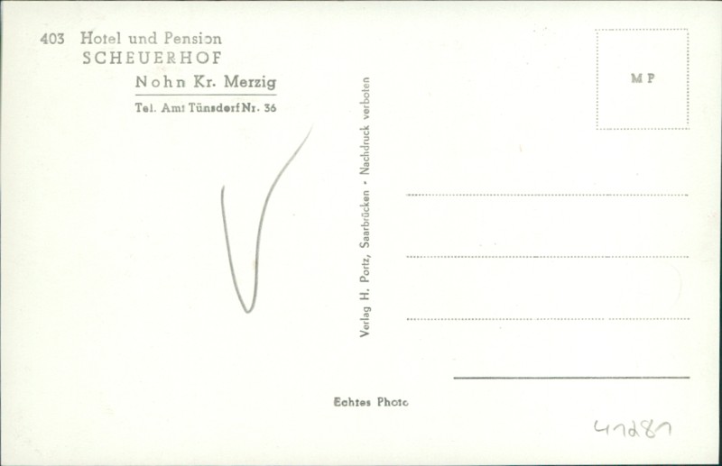 Alte Ansichtskarte aus Mettlach-Nohn, ungebraucht, gedruckt um 1950.