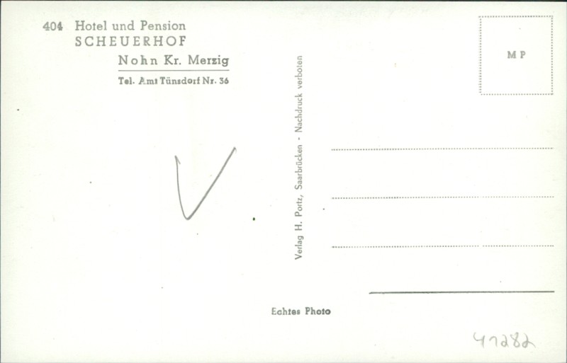 Alte Ansichtskarte aus Mettlach-Nohn, ungebraucht, gedruckt um 1950.