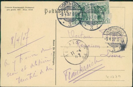 Alte Ansichtskarte aus Dortmund, gelaufen am 09.04.1907.