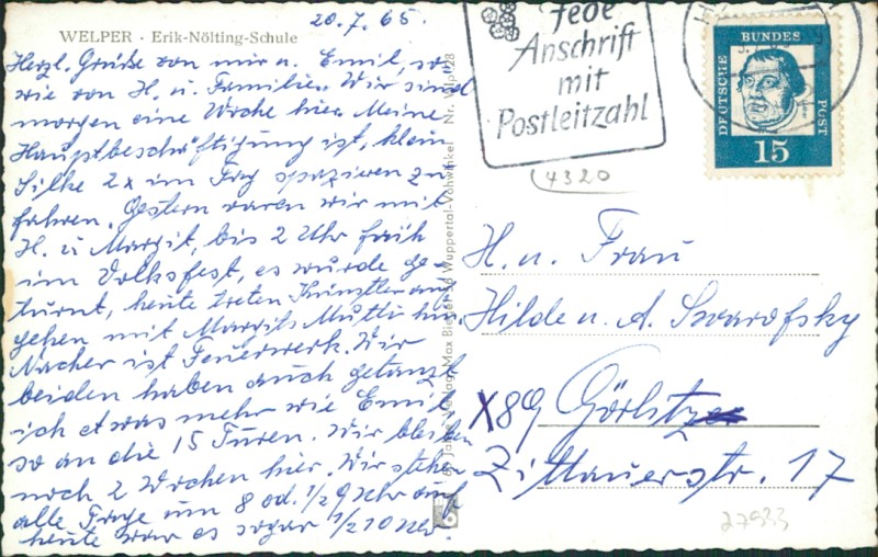 Alte Ansichtskarte aus Hattingen-Welper, gelaufen am 20.07.1965.