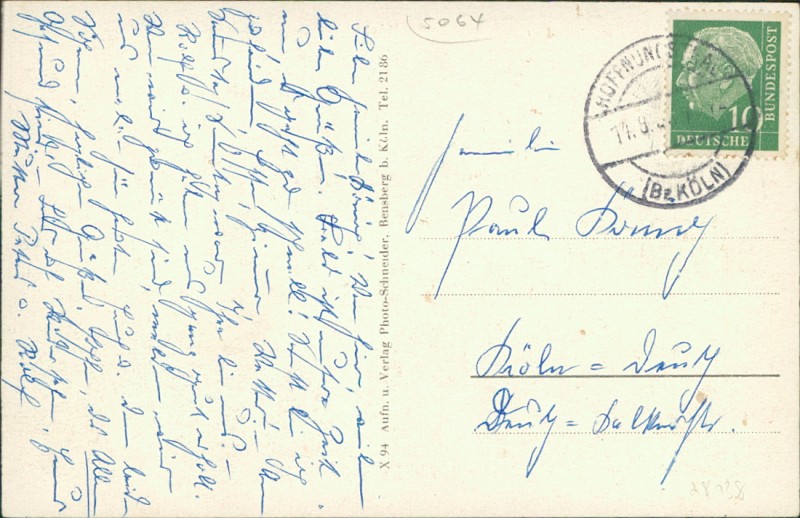 Verlag | Photo-Schneider, Bensberg b. Köln. Tel. 2186 |