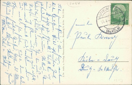 Alte Ansichtskarte aus Rösrath-Hoffnungsthal, gelaufen um 1954 von Hoffnungsthal nach Köln.