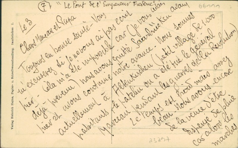 | Verlag | Heinrich Heyne, Papier- u. Schreibwarenhandlung, Saarbrücken |